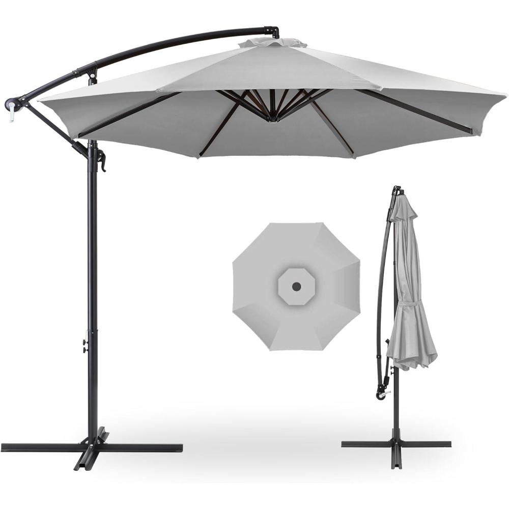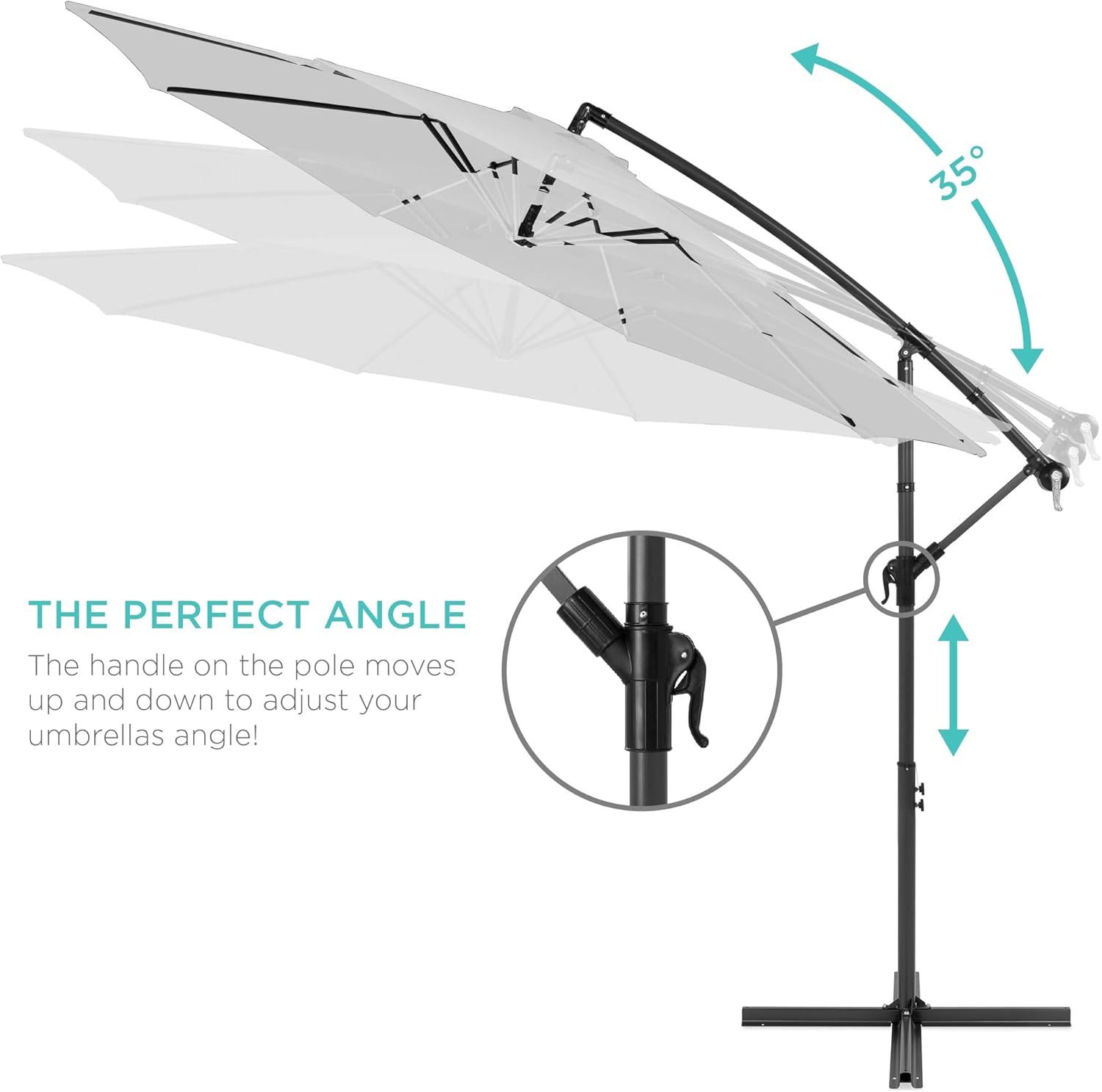 Best Choice Products 10ft Offset Hanging Market Patio Umbrella w/Easy Tilt Adjustment, Polyester Shade, 8 Ribs for Backyard, Poolside, Lawn and Garden(Gray)