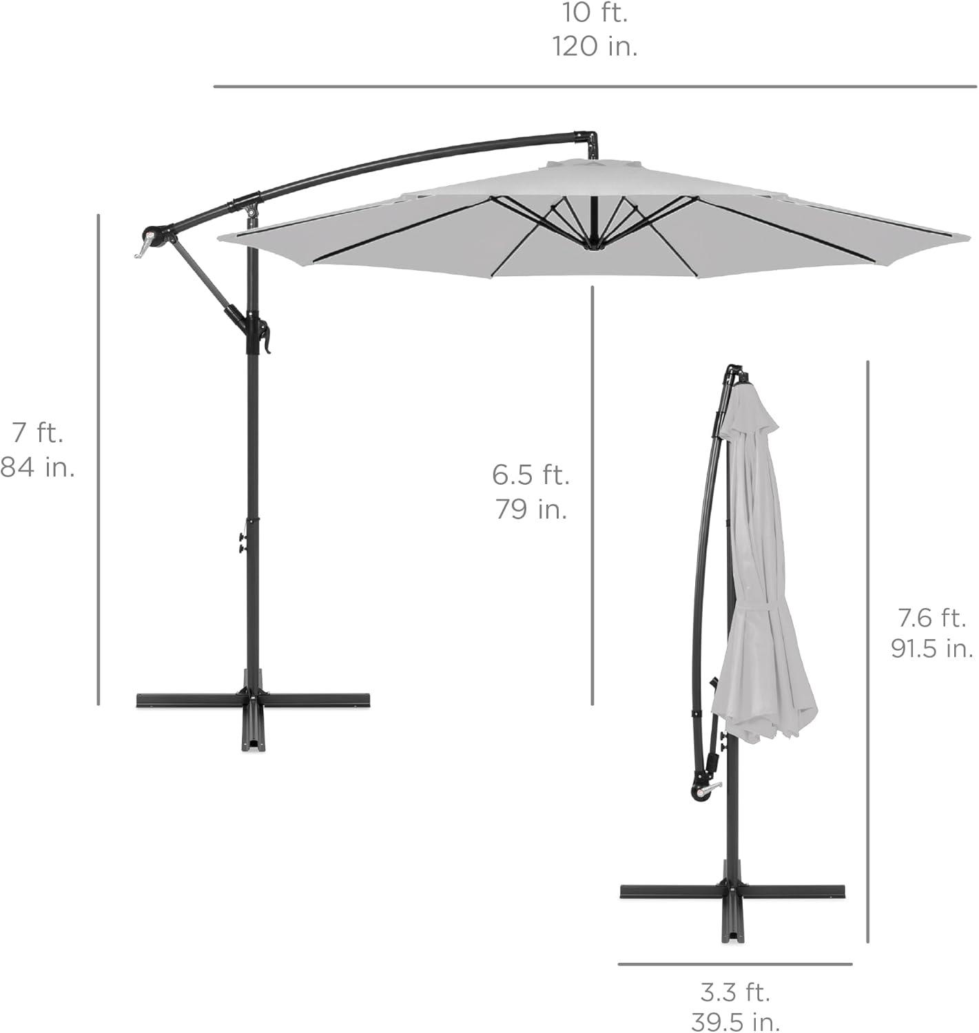 Best Choice Products 10ft Offset Hanging Market Patio Umbrella w/Easy Tilt Adjustment, Polyester Shade, 8 Ribs for Backyard, Poolside, Lawn and Garden(Fog Gray)