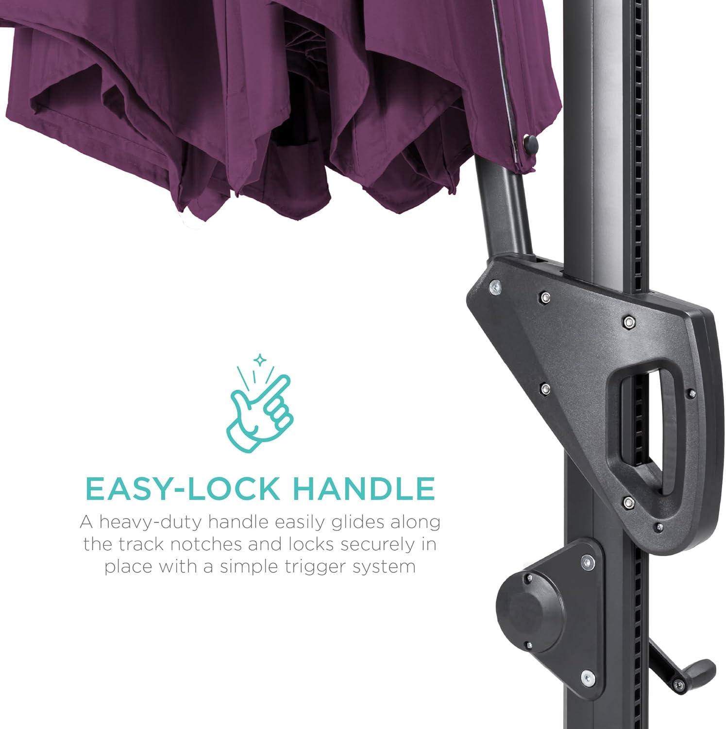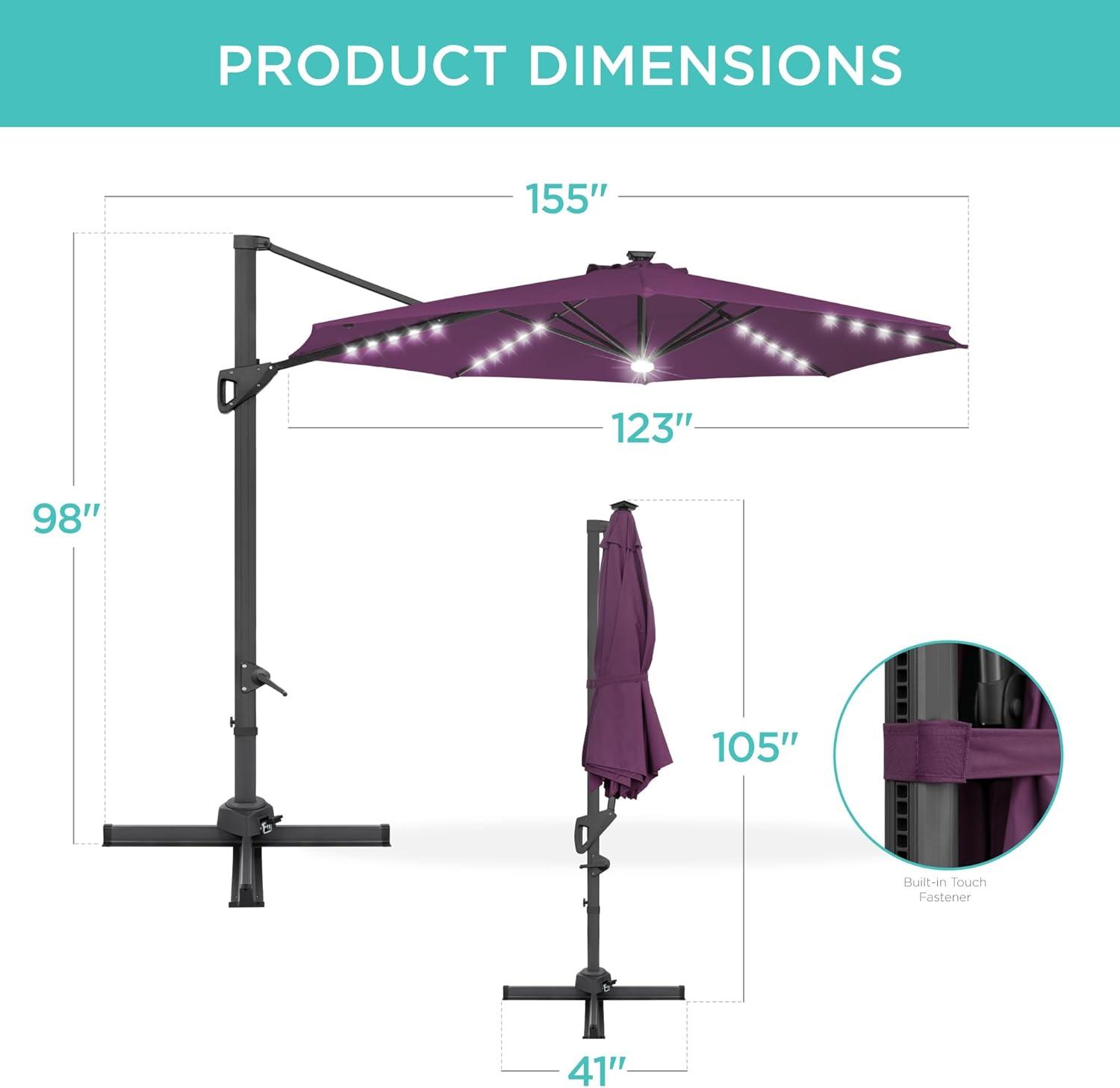 Best Choice Products 10ft Solar LED Cantilever Patio Umbrella, 360-Degree Rotation Hanging Offset Market Outdoor Sun Shade for Backyard, Deck, Poolside w/Lights, Easy Tilt, Cross Base(Amethyst Purple)