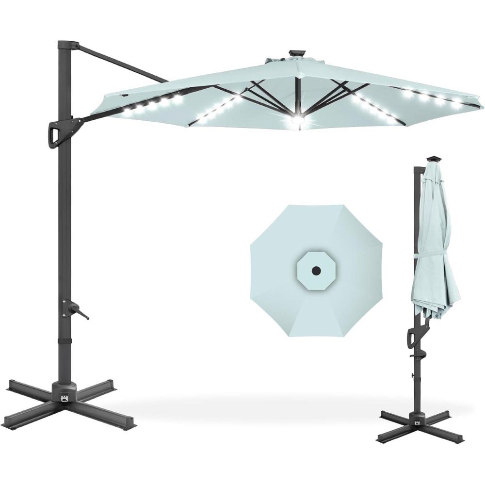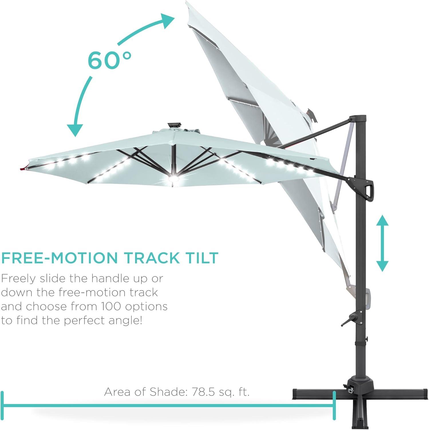 Best Choice Products 10ft Solar LED Cantilever Patio Umbrella, 360-Degree Rotation Hanging Offset Market Outdoor Sun Shade for Backyard, Deck, Poolside w/Lights, Easy Tilt, Cross Base(Baby Blue)