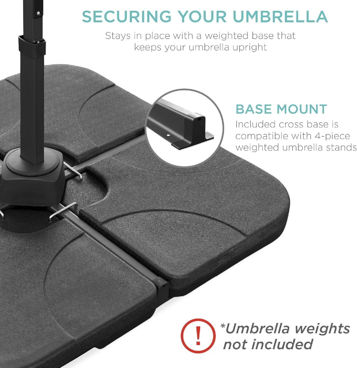 Best Choice Products 10ft Solar LED Cantilever Patio Umbrella, 360-Degree Rotation Hanging Offset Market Outdoor Sun Shade for Backyard, Deck, Poolside w/Lights, Easy Tilt, Cross Base(Green)