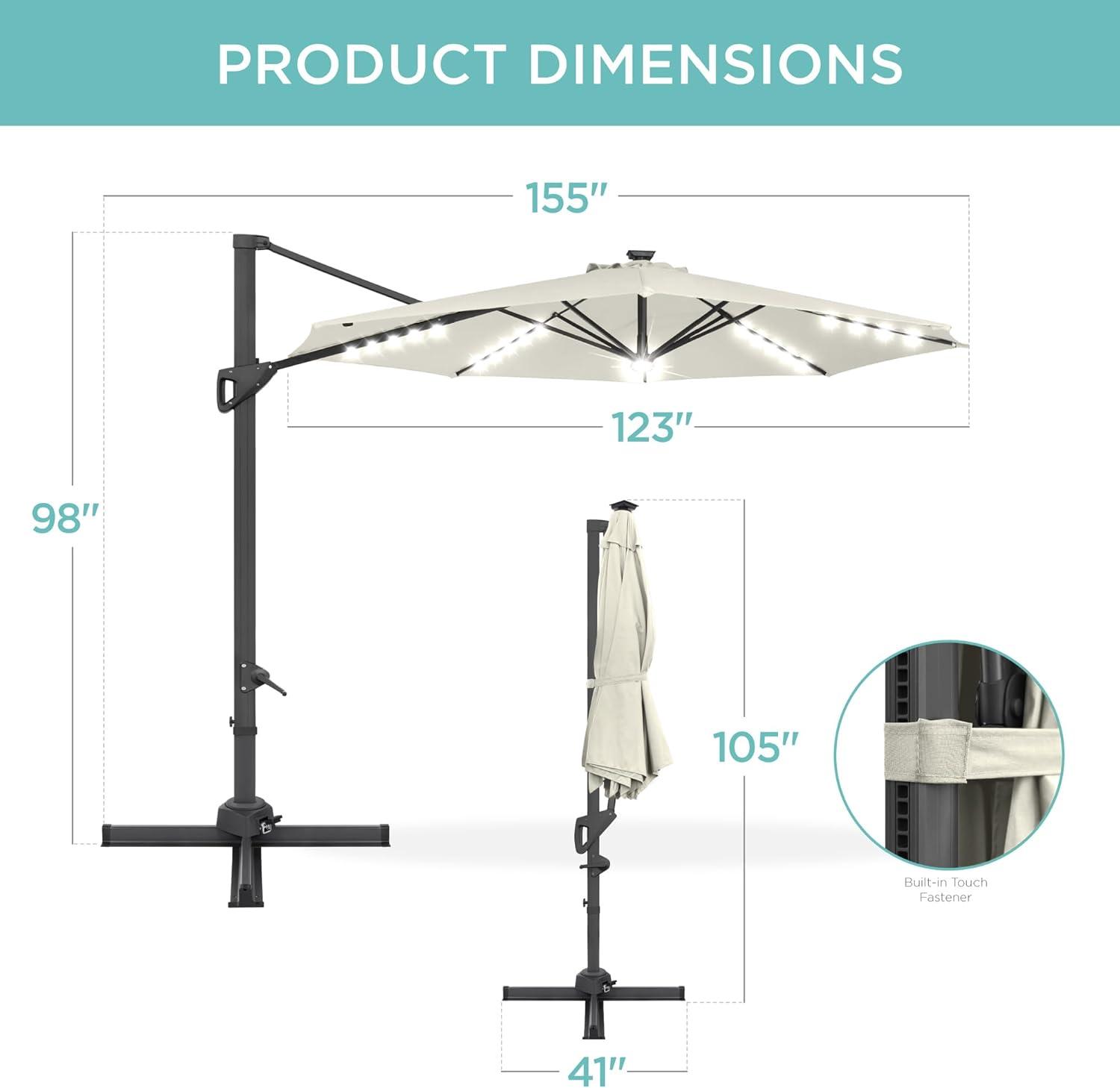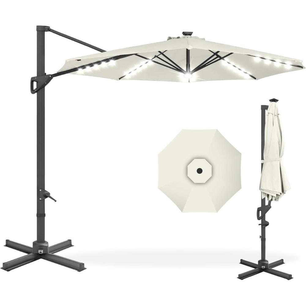 Best Choice Products 10ft Solar LED Cantilever Patio Umbrella, 360-Degree Rotation Hanging Offset Market Outdoor Sun Shade for Backyard, Deck, Poolside w/Lights, Easy Tilt, Cross Base(Ivory)