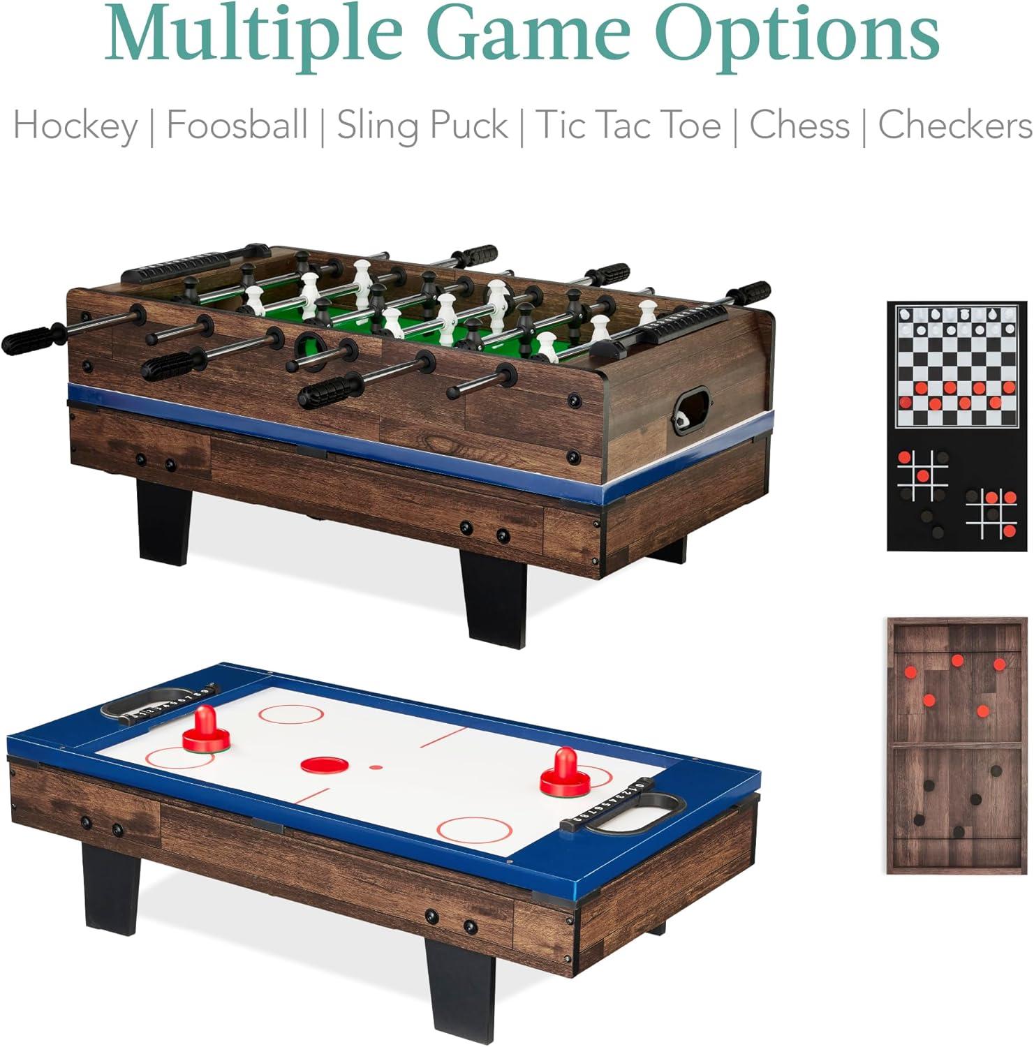 Best Choice Products 11-in-1 Kids Combo Game Table Set for Home, Game Room w/Ping Pong, Foosball, Table Hockey, Chess, Checkers, Shuffleboard, Bowling, 5 Accessory Bags(Dark Wood)