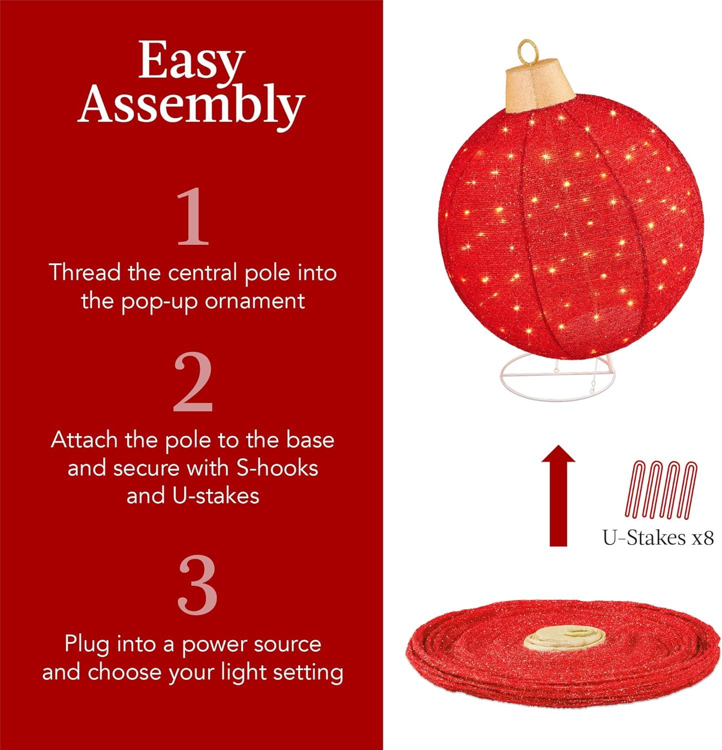 Best Choice Products 2pc Lighted Pop-Up Outdoor Christmas Ornament Set, Holiday Ball Decoration w/ 220 LED Lights, 8 Light Functions – Red/Gold(Red /Gold – Extra Large)