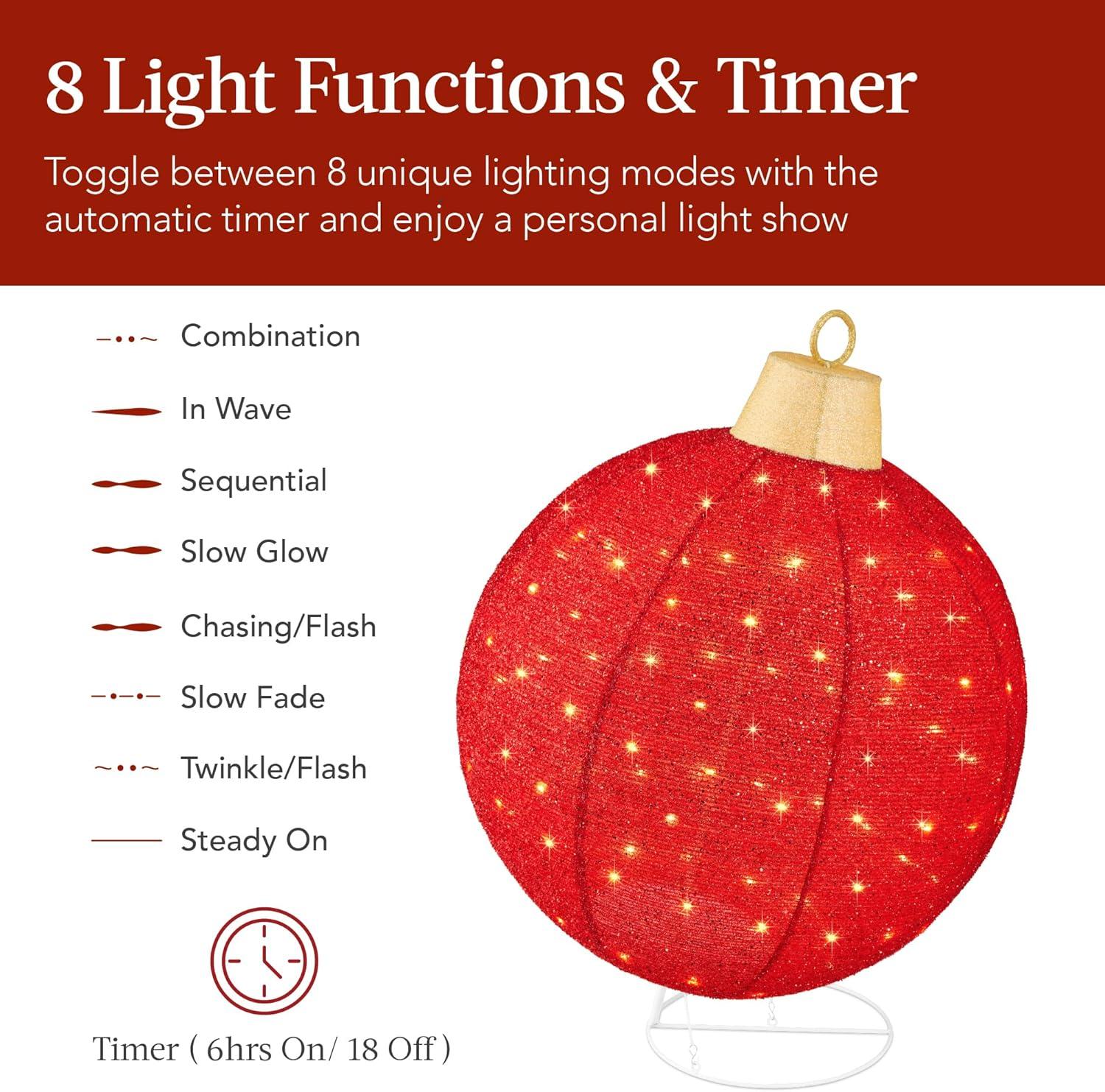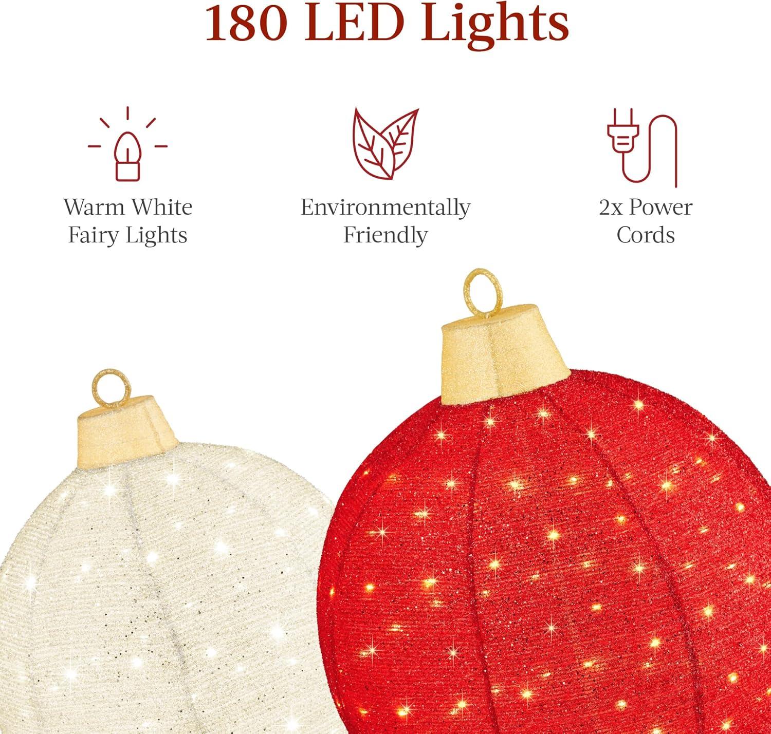 Best Choice Products 2pc Lighted Pop-Up Outdoor Christmas Ornament Set, Holiday Ball Decoration w/ 220 LED Lights, 8 Light Functions - Red/Gold(Red/White - Large)