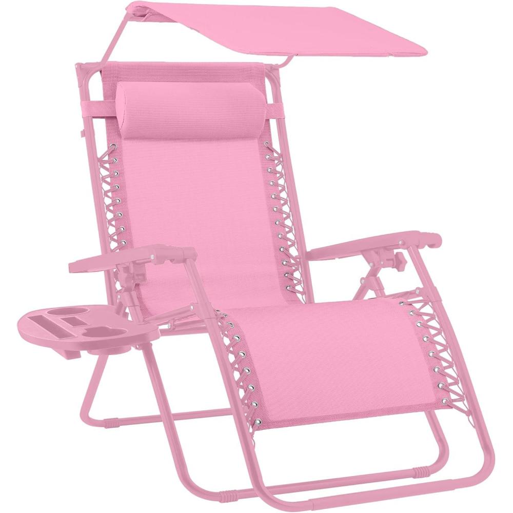Best Choice Products 30” Wide Folding Zero Gravity Outdoor Recliner Patio Lounge Chair w/Adjustable Canopy Shade, Headrest, Side Accessory Tray – Marine(Carnation)