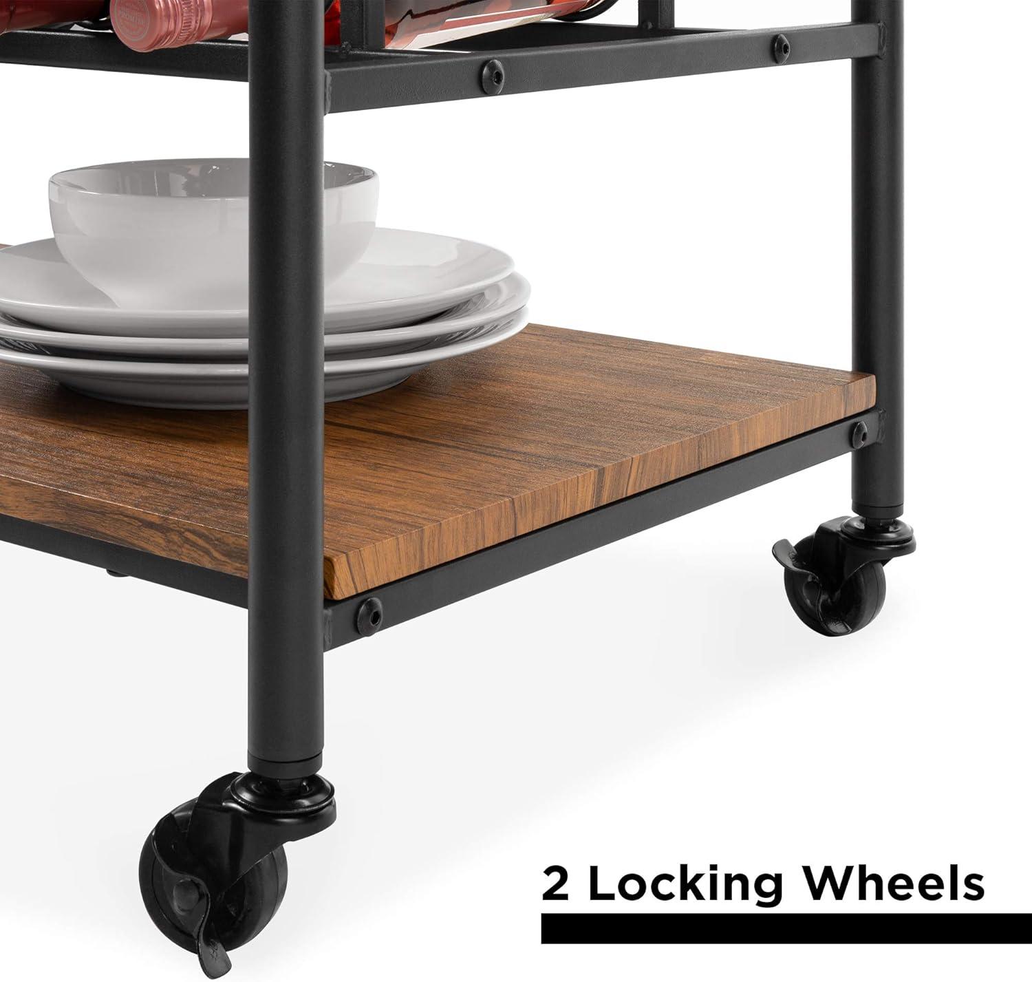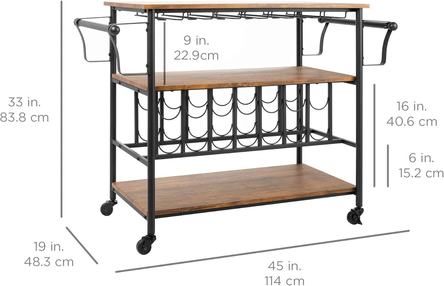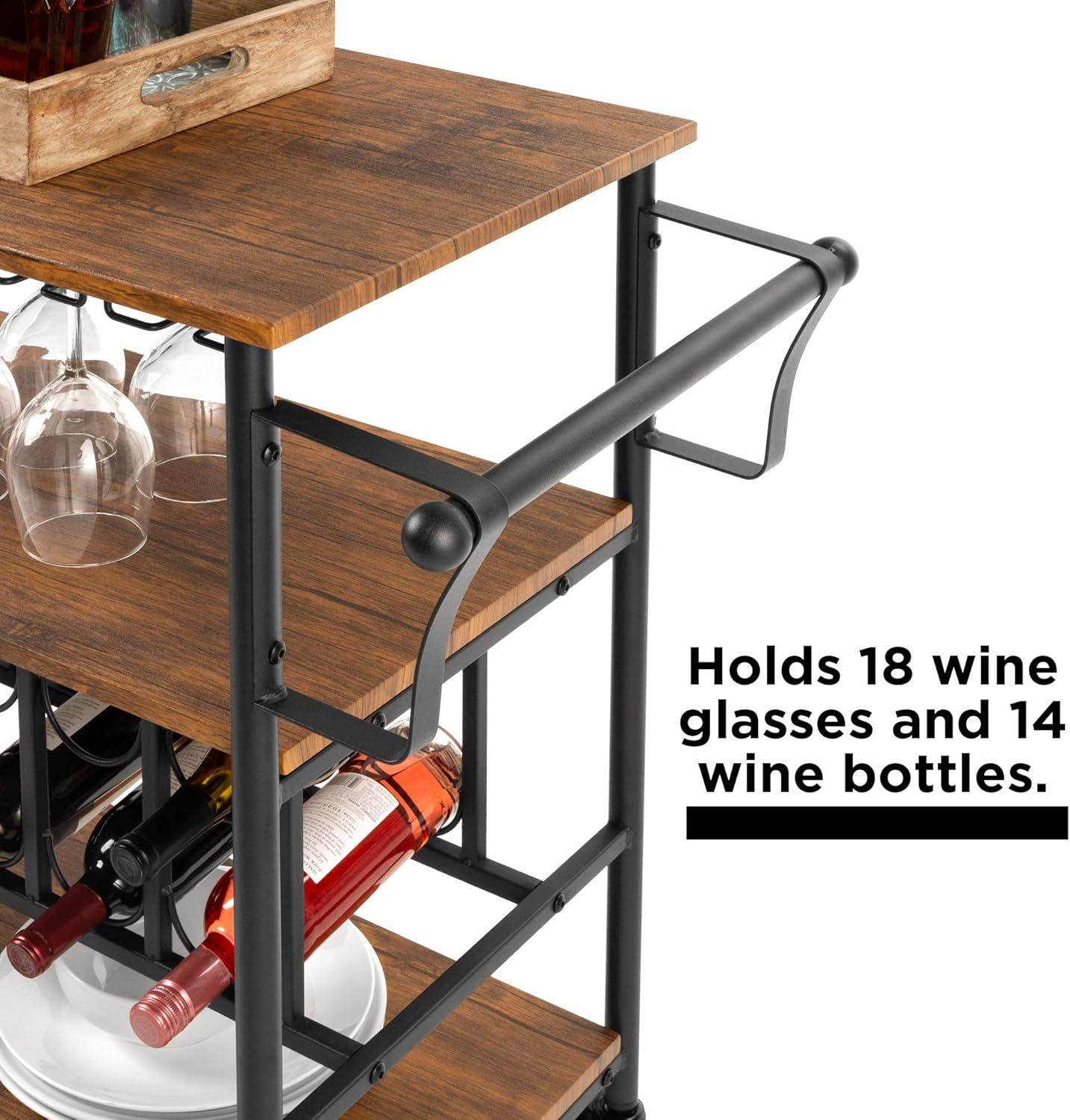 Best Choice Products 45in Industrial Wood Shelf Bar & Wine Storage Service Cart Trolley w/ 14 Bottle & 18 Glass Racks, Locking Caster Wheels