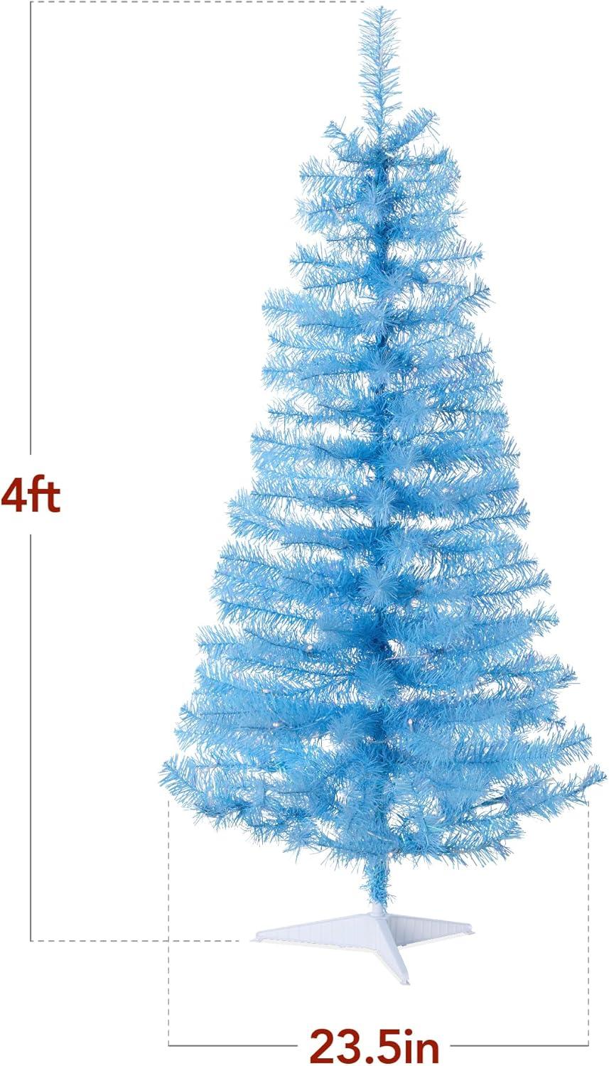 Best Choice Products 4ft Pre-lit Christmas Tree, Artificial Mini Tree Perfect for Kids, Apartments, Bedroom with Twinkling LED Lights - Green Spruce(Baby Blue)