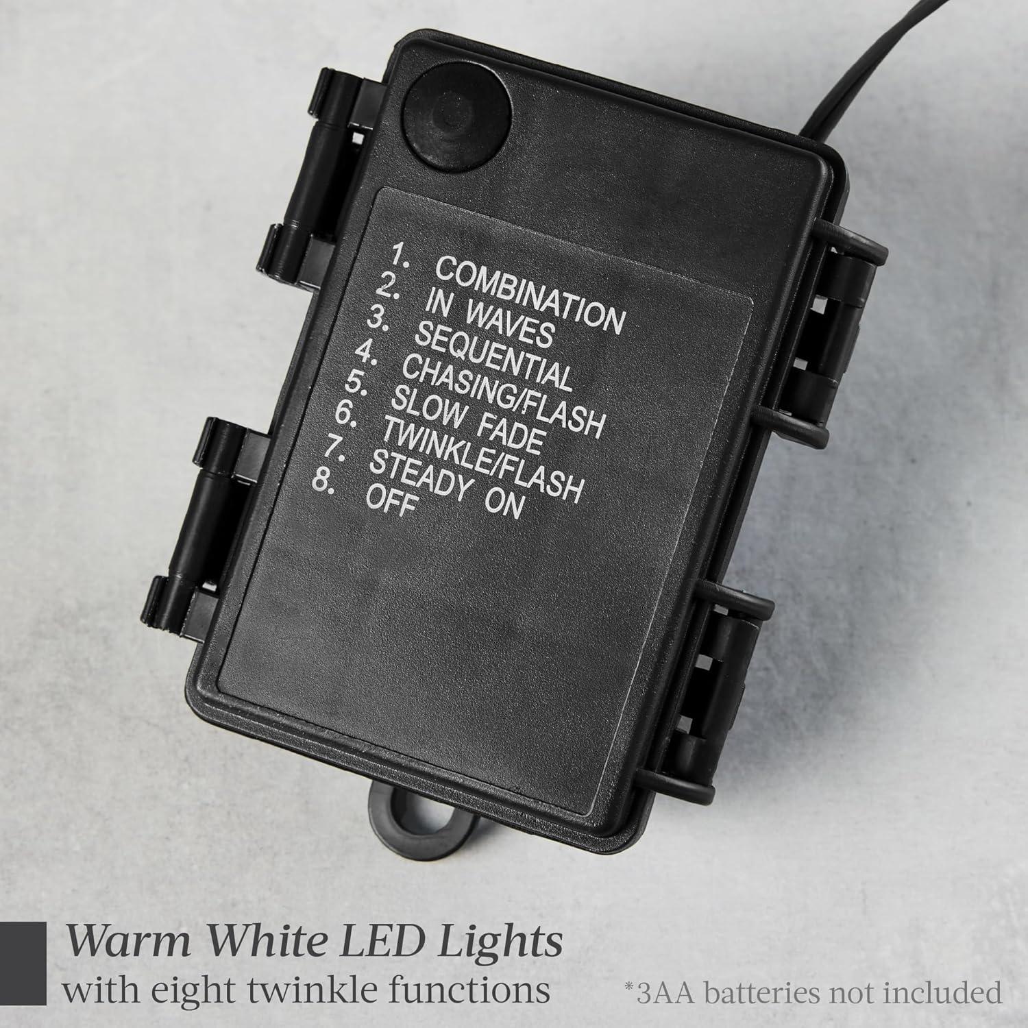 BATTERY-POWERED TWINKLING LED LIGHTS: Our trees come pre-strung with 65 white LED lights, battery-powered and complete with a timer for season-long enjoyment; Note: Requires 3 AA batteries (not included)