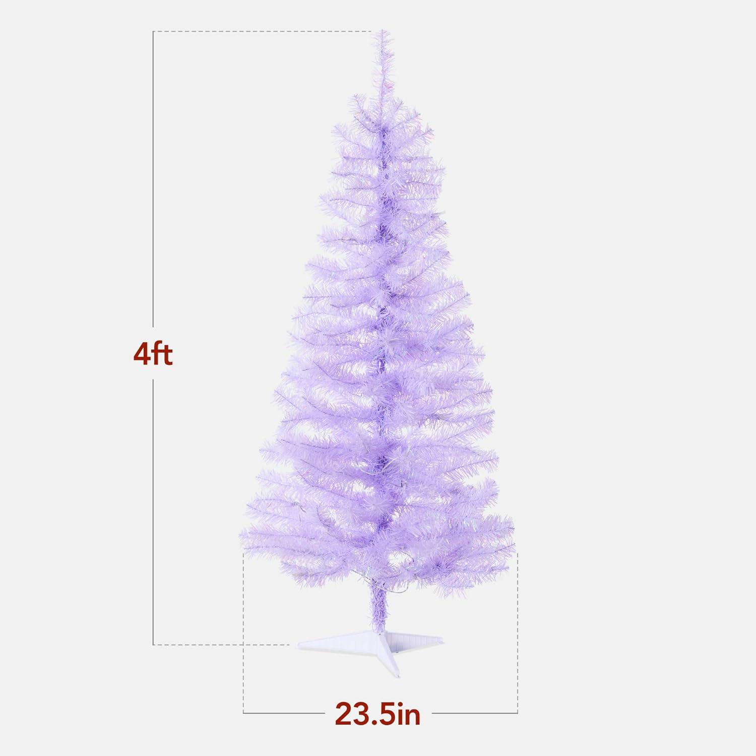 Best Choice Products 4ft Pre-lit Christmas Tree, Artificial Mini Tree Perfect for Kids, Apartments, Bedroom with Twinkling LED Lights – Green Spruce(Lavender)