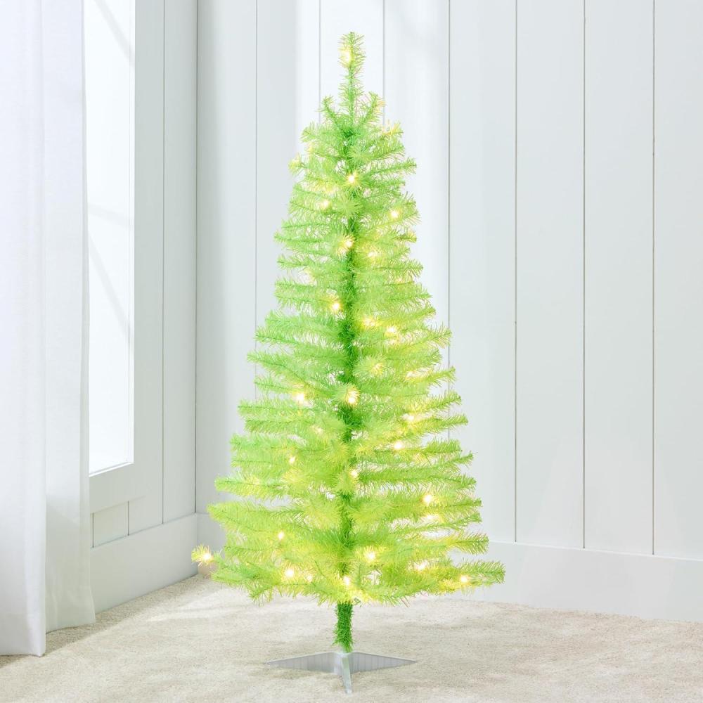 Best Choice Products 4ft Pre-lit Christmas Tree, Artificial Mini Tree Perfect for Kids, Apartments, Bedroom with Twinkling LED Lights - Green Spruce(Lime Green)