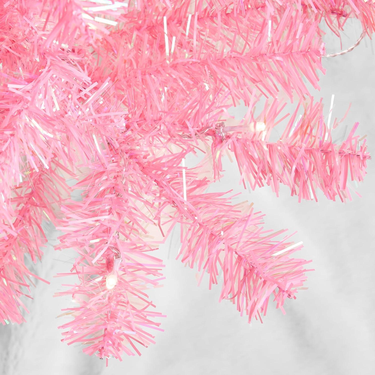 Best Choice Products 4ft Pre-lit Christmas Tree, Artificial Mini Tree Perfect for Kids, Apartments, Bedroom with Twinkling LED Lights - Green Spruce(Pink Tinsel)