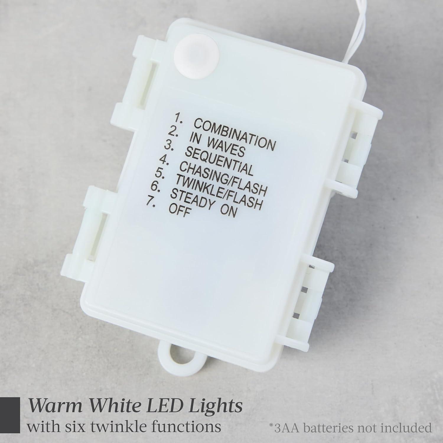 BATTERY-POWERED TWINKLING LED LIGHTS: Our trees come pre-strung with 65 white LED lights, battery-powered and complete with a timer for season-long enjoyment; Note: Requires 3 AA batteries (not included)