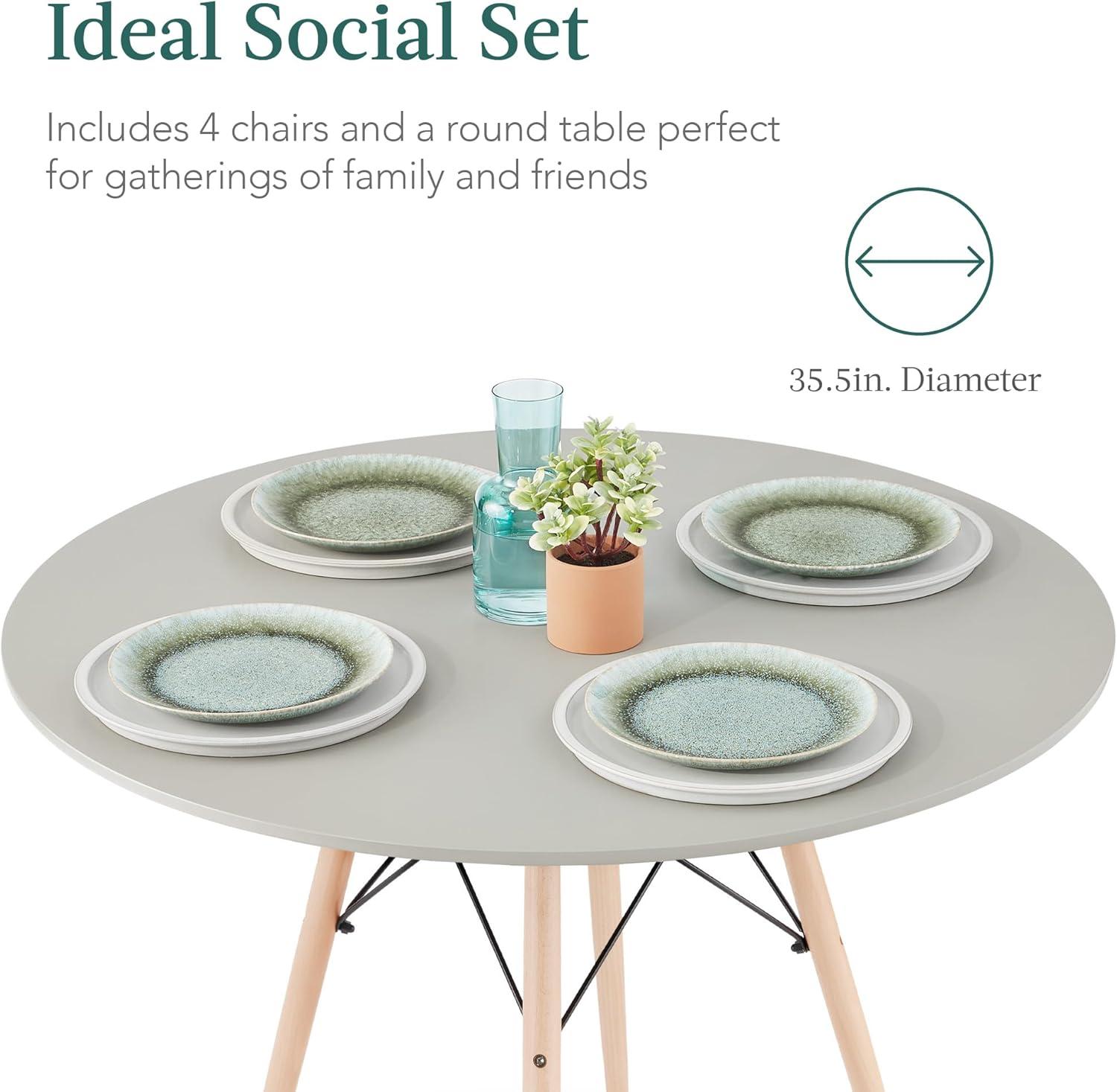 IDEAL SOCIAL SET: Complete with a table and 4 chairs, this set has the perfect round shape for easy, fun conversation between family and friends