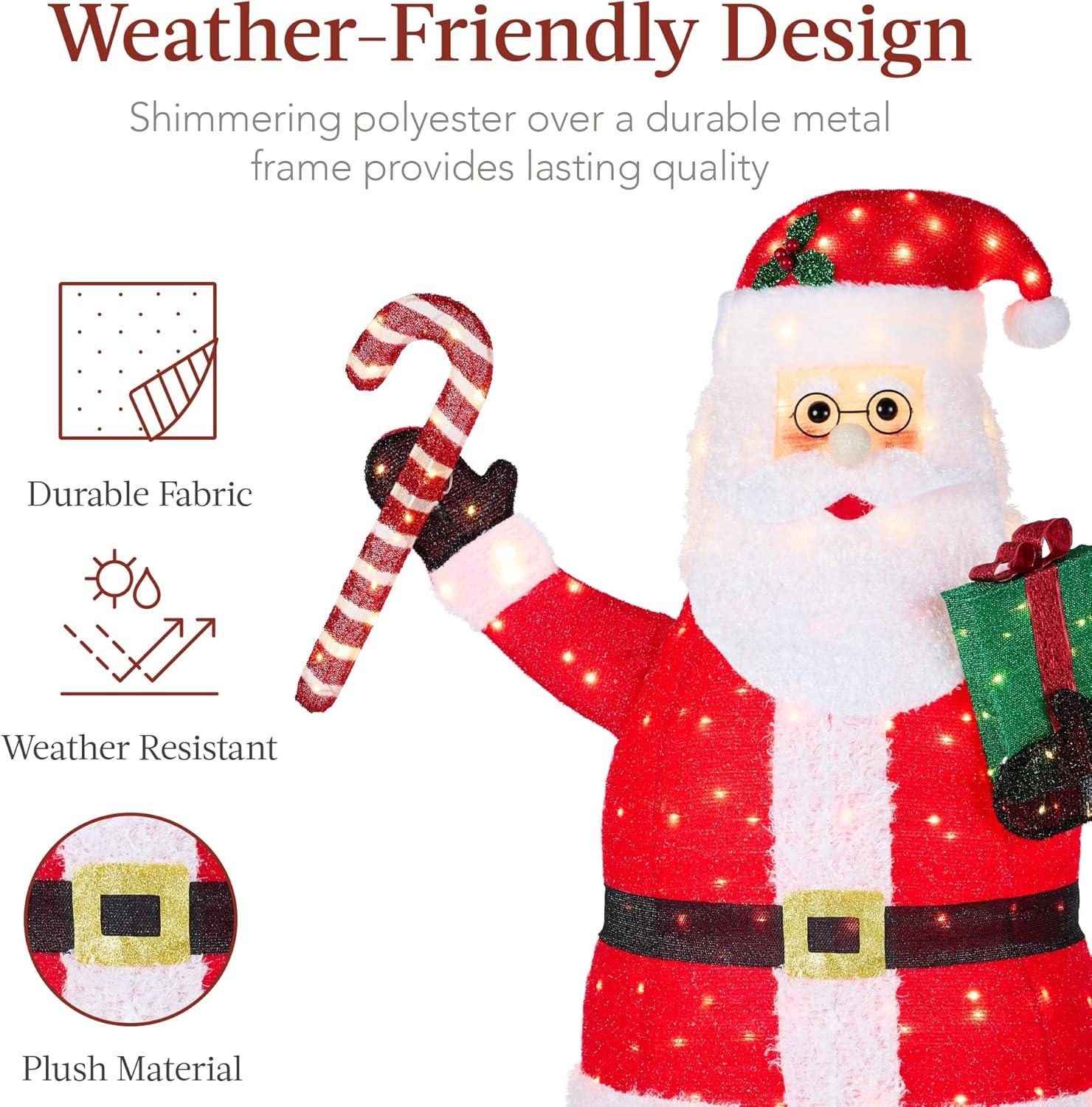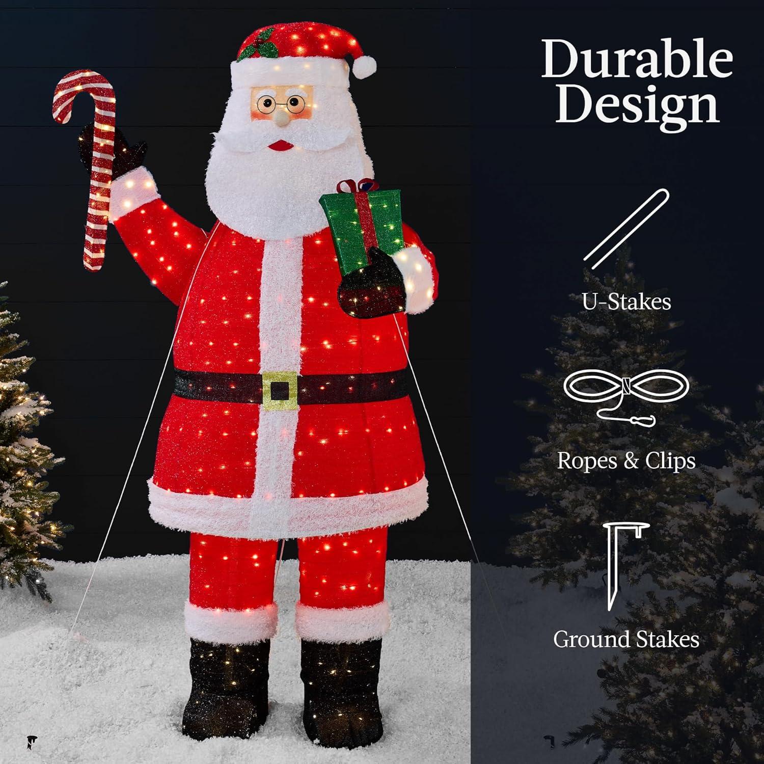 Best Choice Products 5ft Lighted Pop-Up Santa, Large Outdoor Christmas Holiday Decoration w/ 250 LED Lights, Twinkling Candy Cane, Gift Box, Hat(Giant - 8ft)