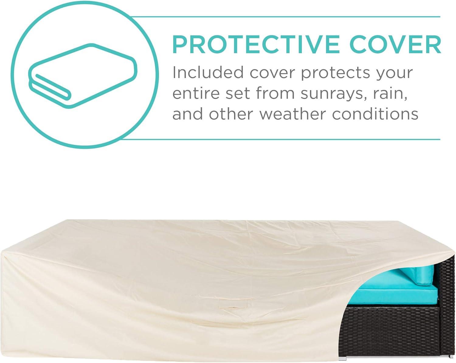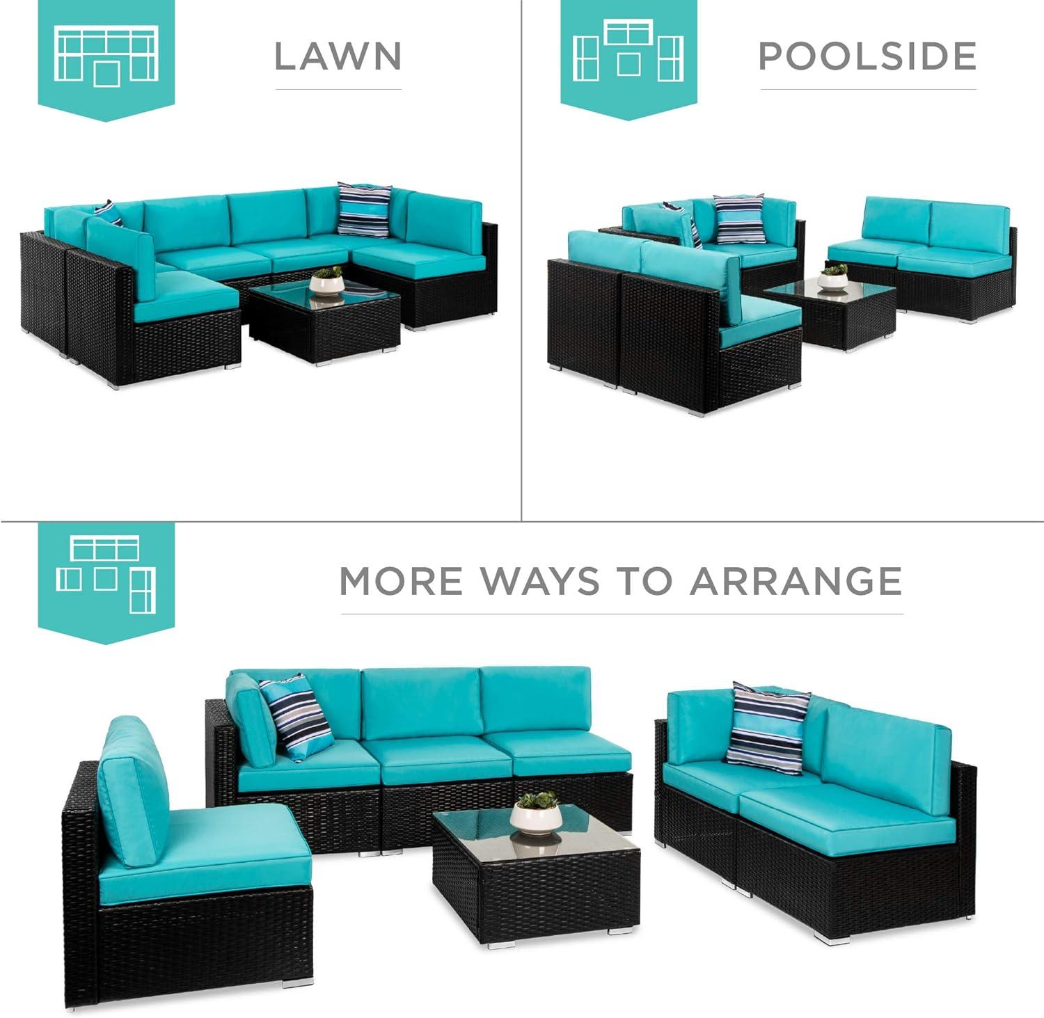 Best Choice Products 7-Piece Modular Outdoor Sectional Wicker Patio Conversation Set w/ 2 Pillows, Coffee Table, Cover Included – Taupe/Pistachio(Black/Teal)