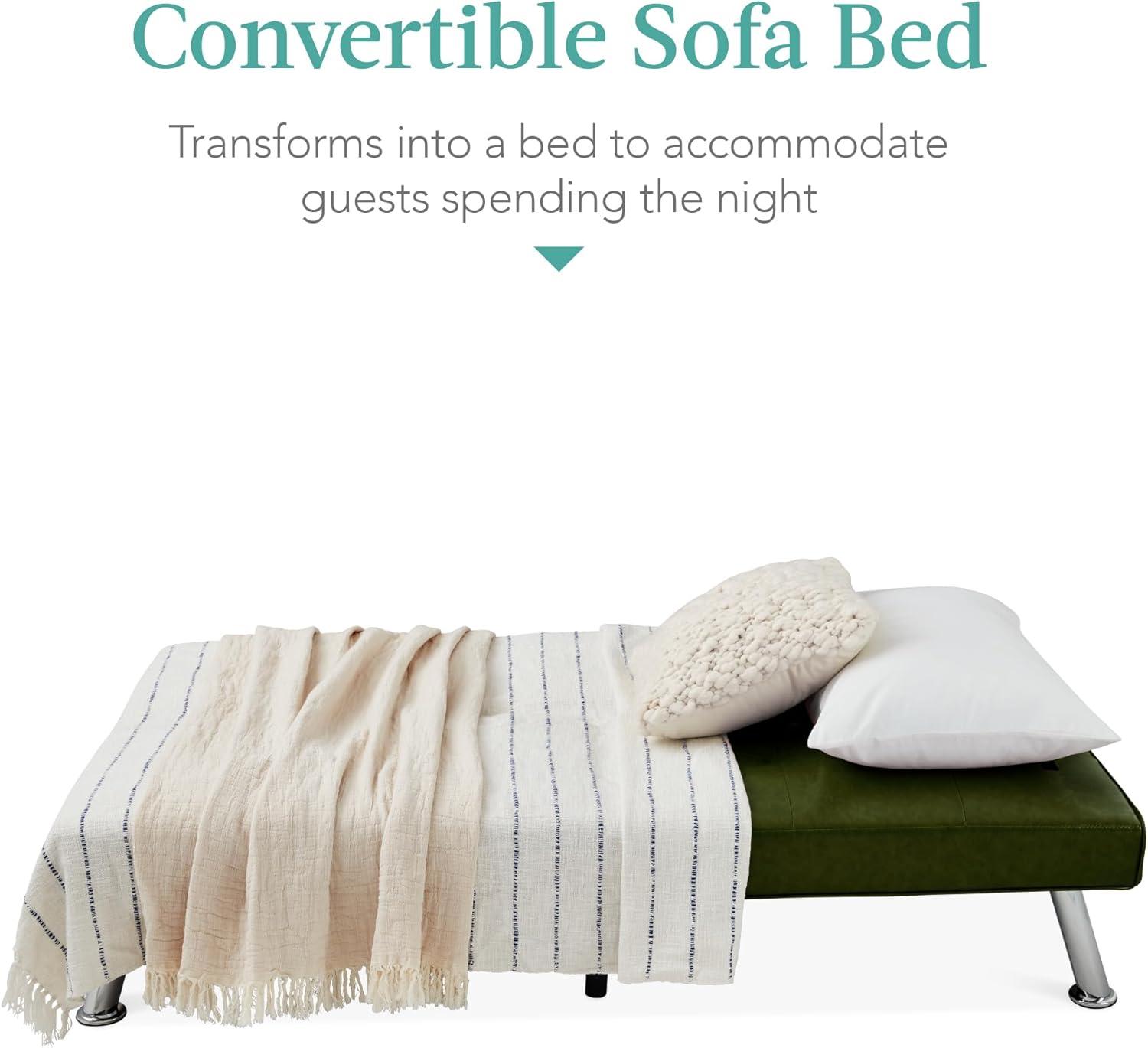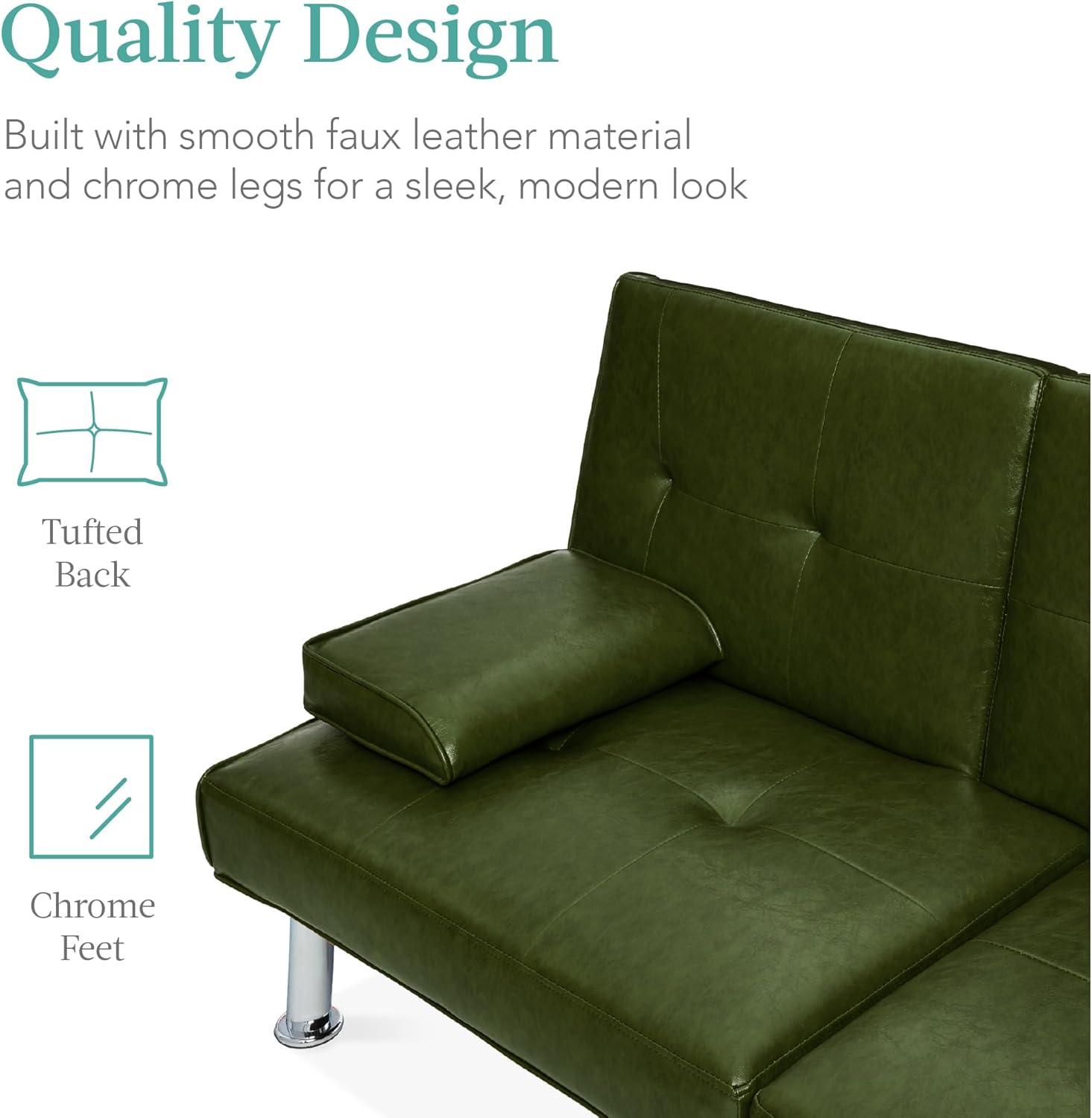 Best Choice Products Faux Leather Upholstered Modern Convertible Futon, Adjustable Folding Sofa Bed, Guest Bed w/Removable Armrests – White(Dark Green)