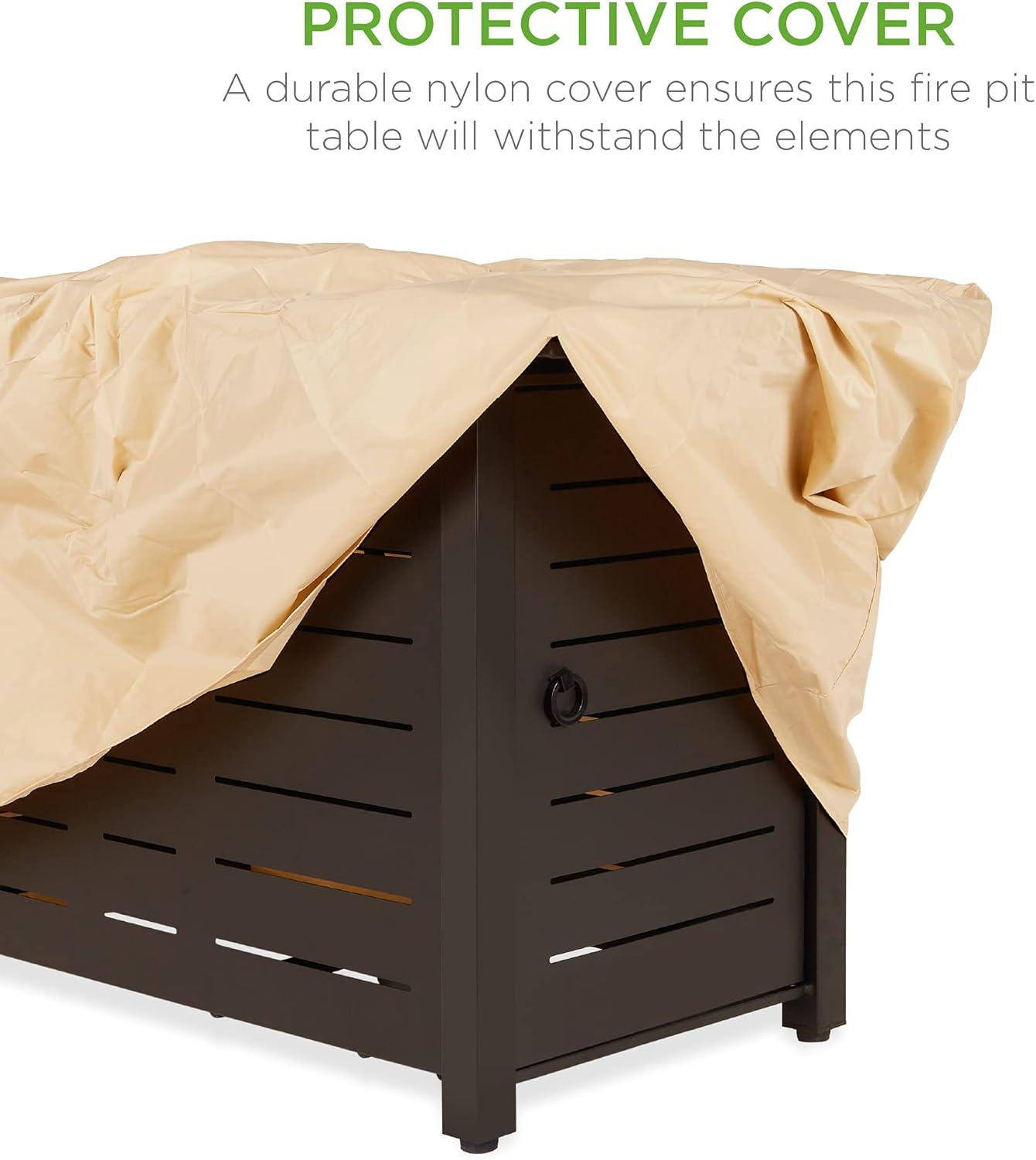 WEATHER-RESISTANT COVER: A durable nylon cover ensures this fire pit table will withstand the elements when not in use