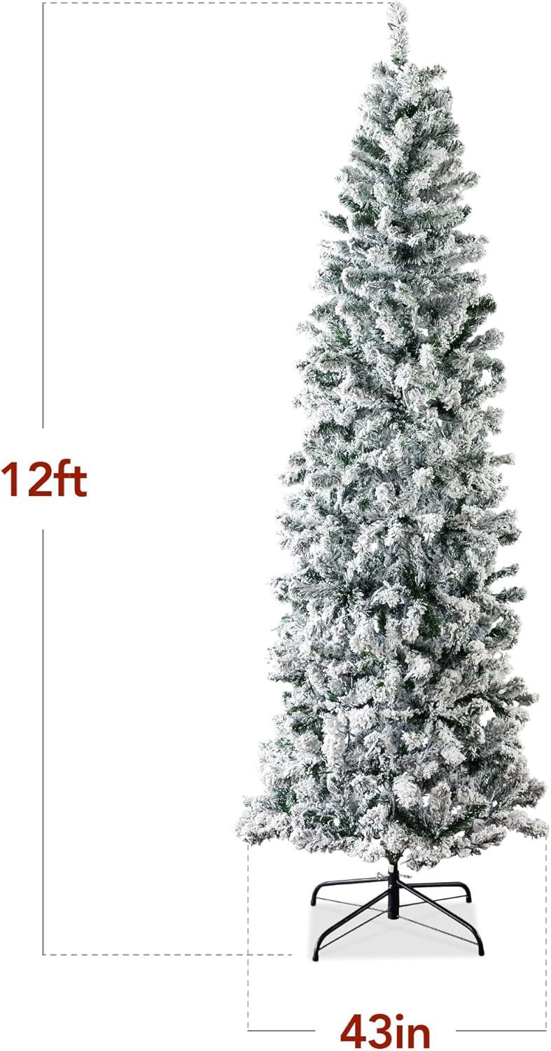 Best Choice Products Flocked Pencil Christmas Tree, Unlit Slim Artificial Holiday Decoration, 6ft Skinny Snowy Appearance w/Base(12ft)