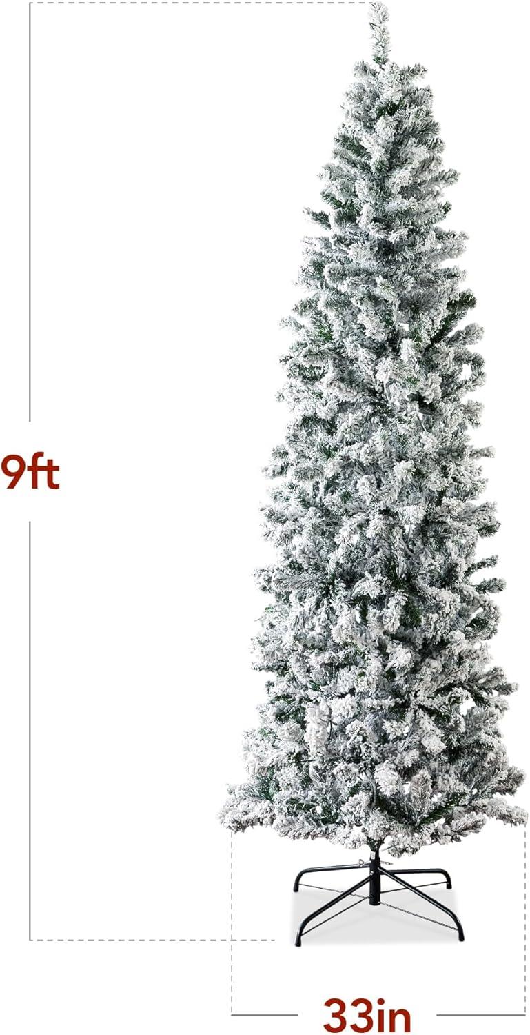 Best Choice Products Flocked Pencil Christmas Tree, Unlit Slim Artificial Holiday Decoration, 6ft Skinny Snowy Appearance w/Base(9ft)