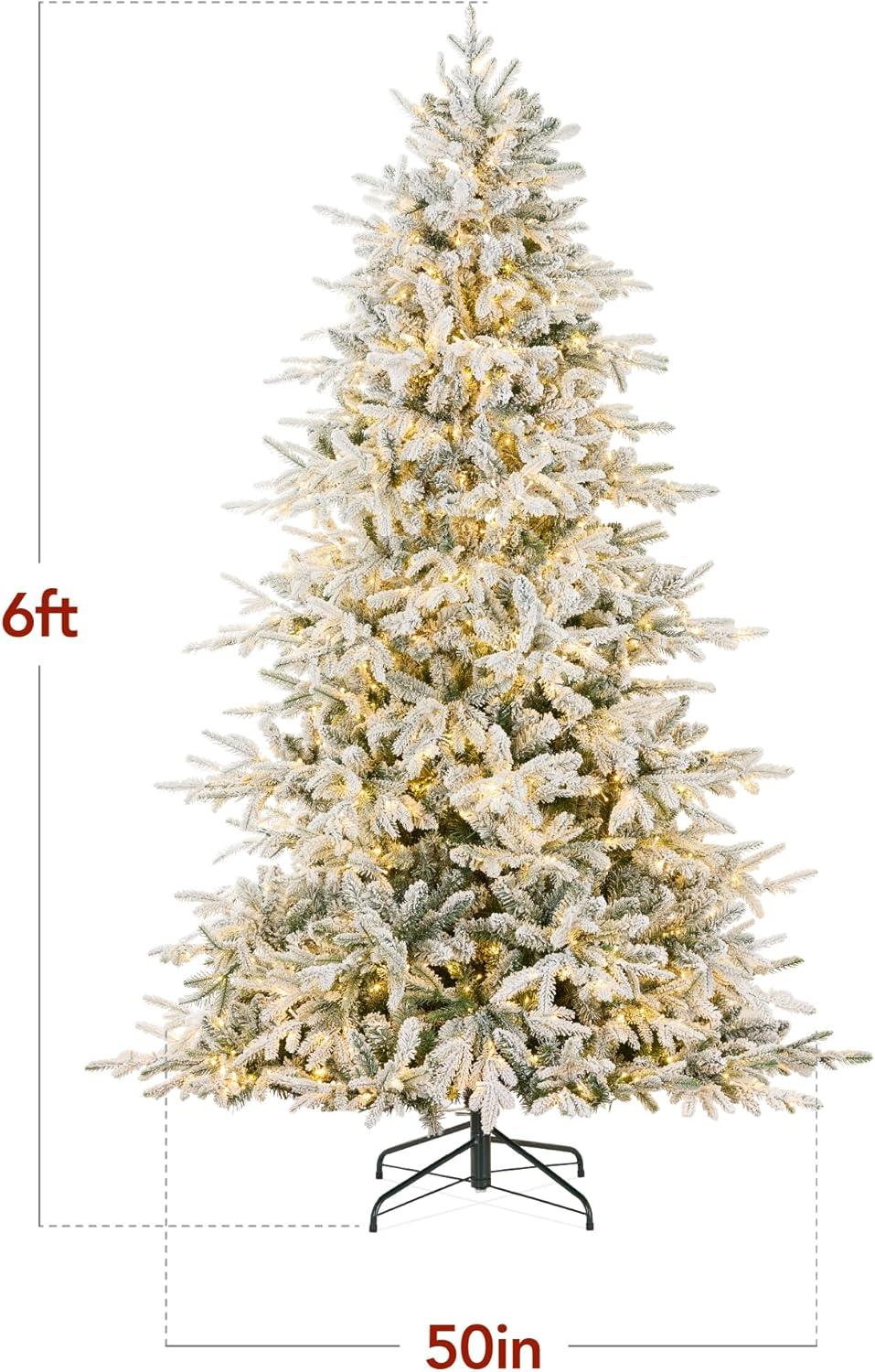 Best Choice Products Full Flocked Aspen Christmas Tree, 6ft Pre-lit Noble Fir w/ 1,200 Super Bright Twinkling Micro LED Lights, 2-in-1 White & Multi(Flocked)