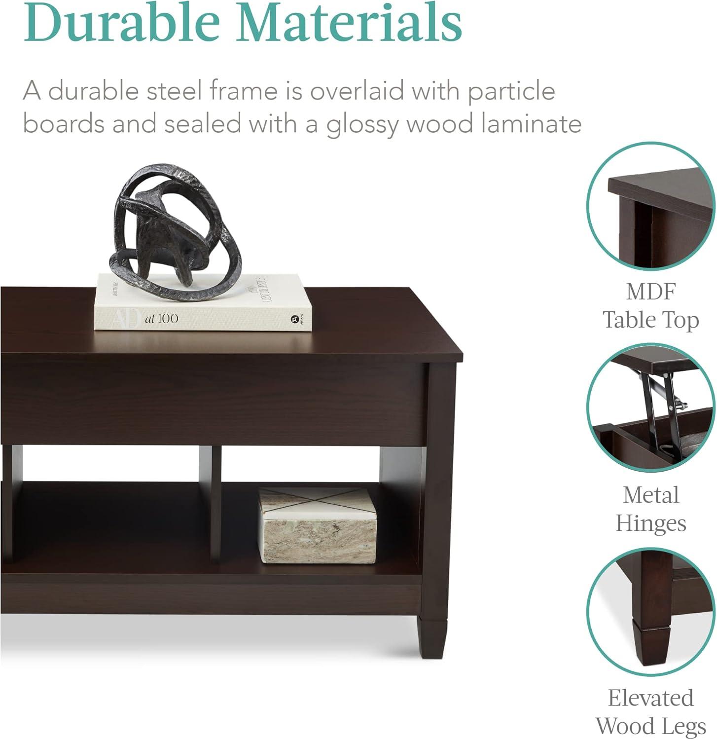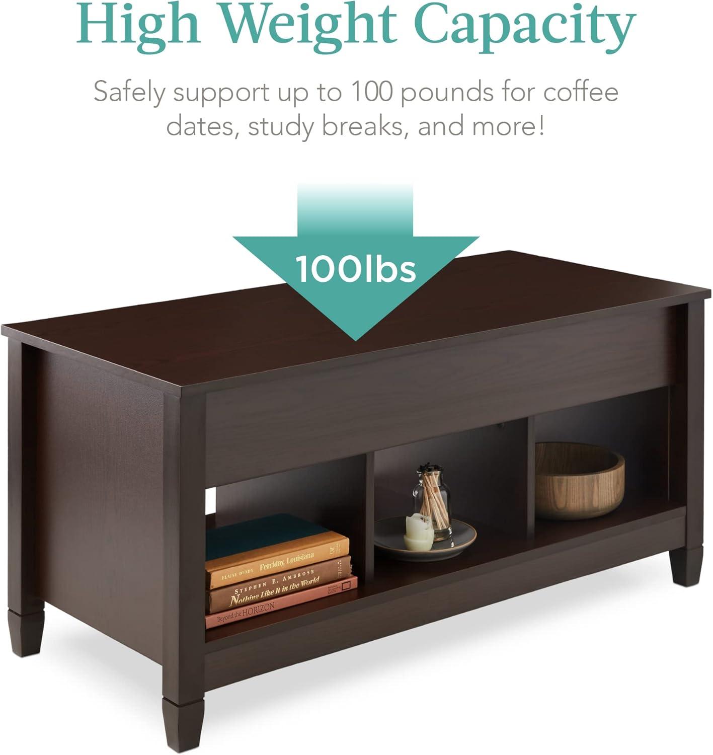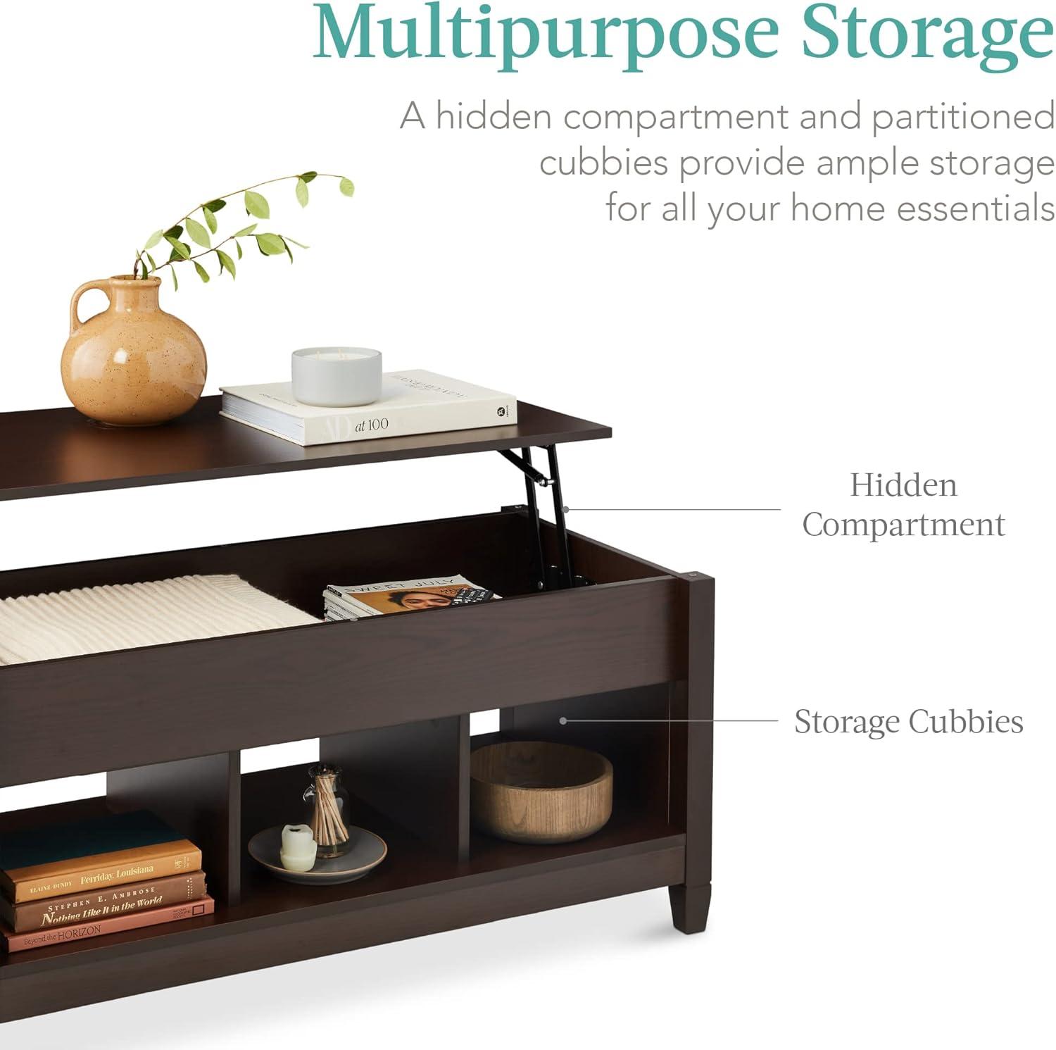Best Choice Products Lift Top Coffee Table with Hidden Storage, Accent Table Furniture for Living Room, Display Shelves – White/Brown(Espresso)