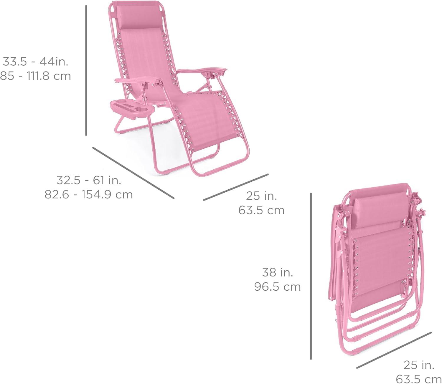 Best Choice Products Set of 2 Adjustable Steel Mesh Zero Gravity Lounge Chair Recliners w/Pillows and Cup Holder Trays – Sage Green(Carnation)