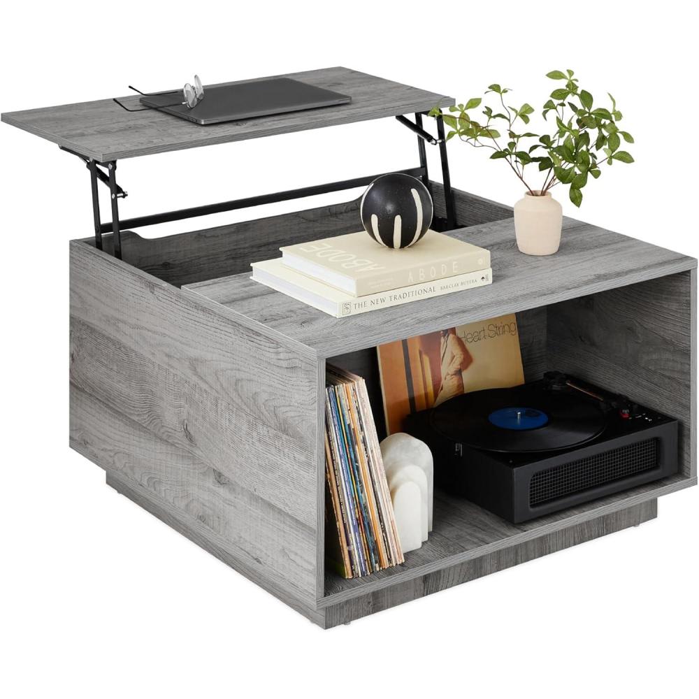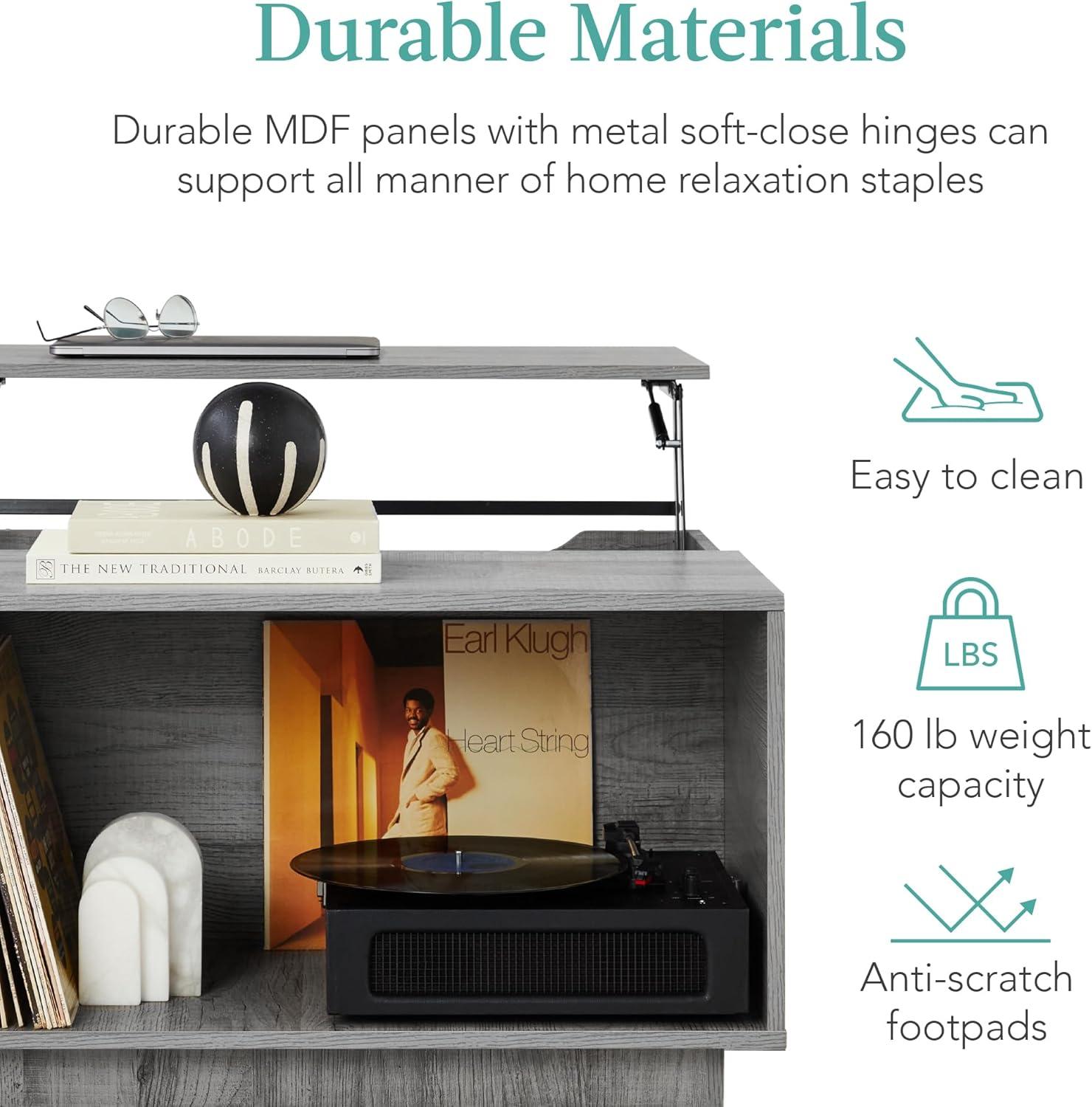 LIFT-TOP DESIGN: A modern twist on convenient lounging, this table features a lift top to provide a floating work or dining surface, complete with soft-close hinges for a smooth transition