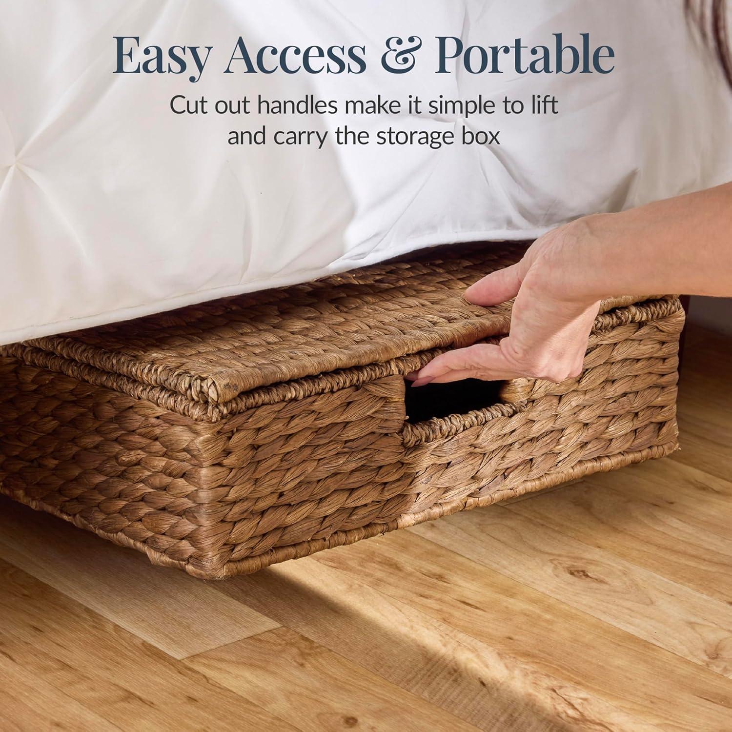 Best Choice Products Under Bed Storage Containers W/Lid, Wheels and Handles, 2-Pack Large Handwoven Water Hyacinth Closet Organizer, Shoe Storage Bins, Multi-Purpose Nesting Baskets - Natural(Chestnut)