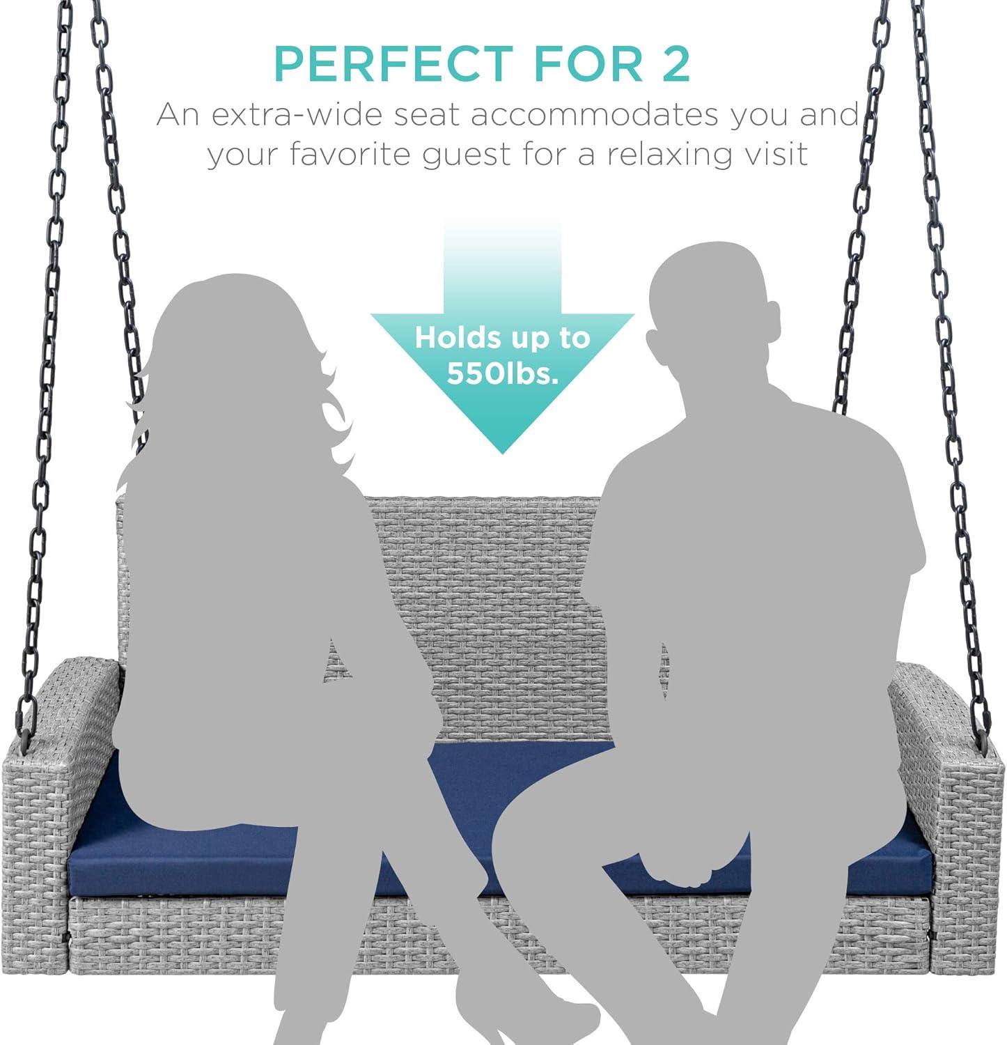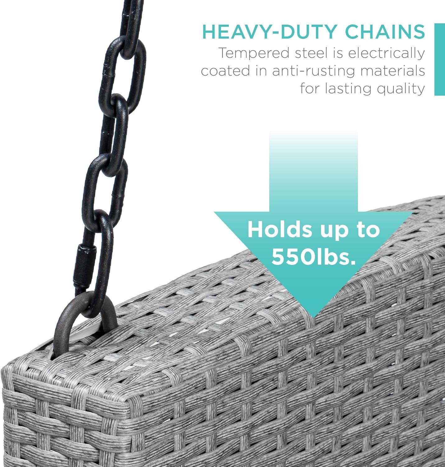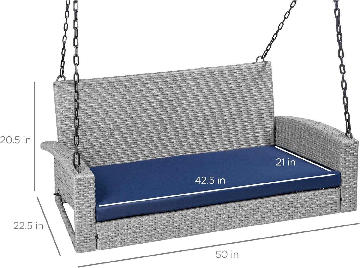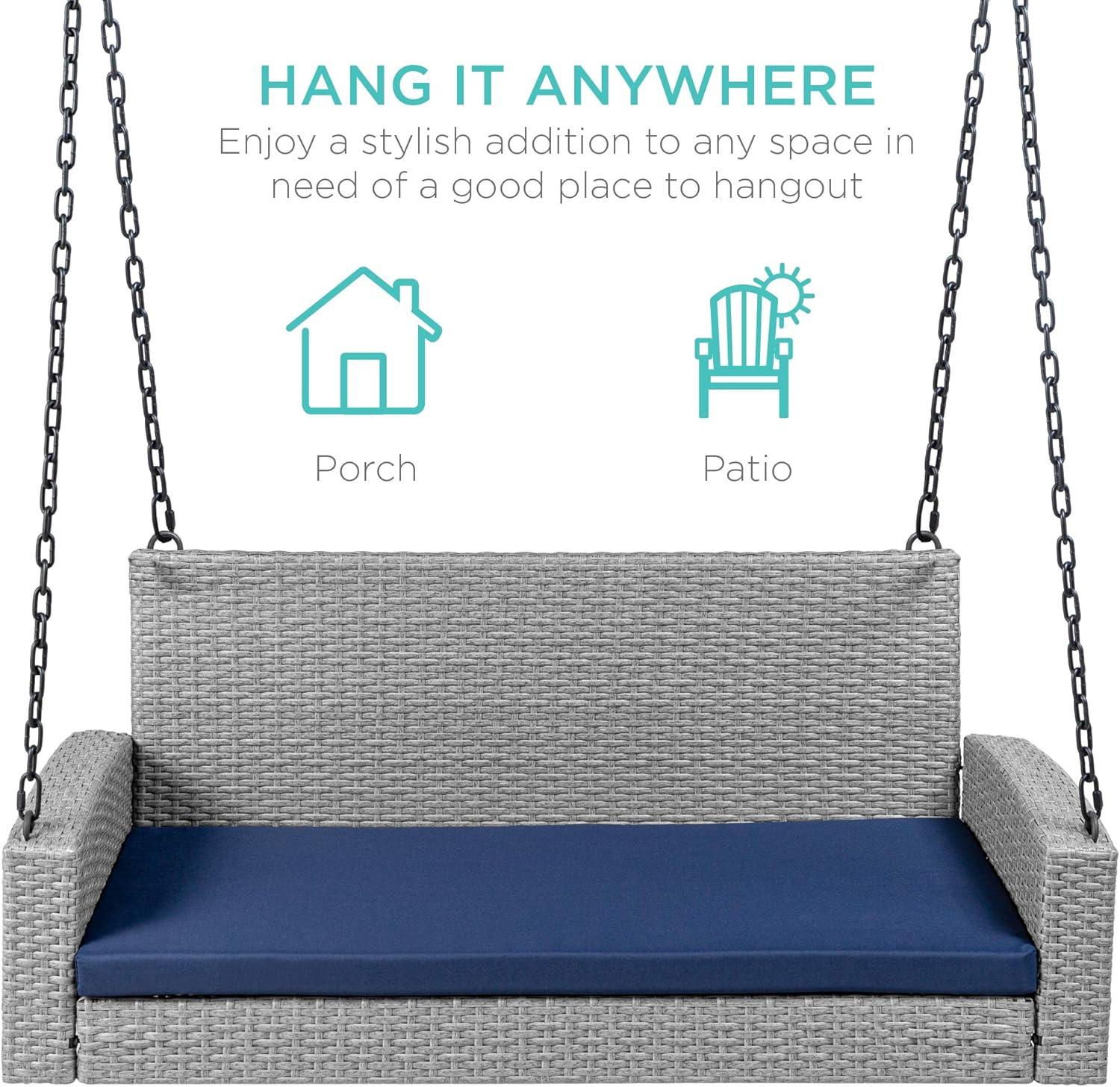 Best Choice Products Woven Wicker Outdoor Porch Swing, Hanging Patio Bench for Deck, Garden w/Mounting Chains, Seat Cushion - Brown/Red(Gray/Navy)